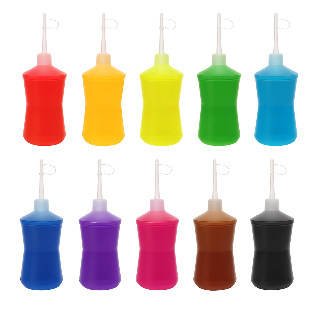• ✅ Bico com cavidade especial - aperte o meio do frasco para controle total ao aplicar os corantes.
